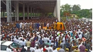 सैफई में ‘धरतीपुत्र’ मुलायम सिंह यादव को श्रद्धाजंलि देने के लिए जनसैलाब उमड़ पड़ा है। एक लाख से ज्यादा लोग पहुंच चुके हैं। सभी अपने नेता के अंतिम दर्शन के लिए इतने उतावले हैं कि एक-दूसरे को धकेलकर आगे बढ़ने की होड़ मची हैं। मंच पर सांसद से लेकर विधायक और यहां तक कि बड़े नेता भी लाइन में हैं। यूपी के दोनों डिप्टी सीएम केशव प्रसाद मौर्य, बृजेश पाठक, केंद्रीय मंत्री जितिन प्रसाद, राज्य मंत्री असीम अरुण, सांसद रीता बहुगुणा जोशी, देवेंद्र सिंह भोले, आंध्र प्रदेश के पूर्व मुख्यमंत्री चंद्रबाबू नायडु ने भी लाइन में लगकर ही मंच श्रद्धाजंलि अर्पित की।