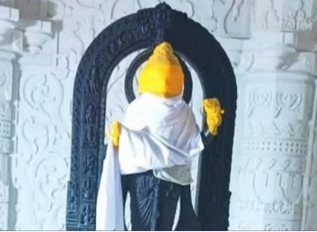 अयोध्या में गुरुवार को विधिवत विधिविधान से राम मंदिर के गर्भगृह में रामलला का विग्रह स्थापित किया जा चुका है। पांच वर्ष के राम लला का यह विग्रह श्याम वर्ण का है। रामलला कमल के पुष्प पर खड़े हैं। गर्भगृह में स्थापित होते समय रामलला का हाथ और मुख पीले रंग के कपड़े से ढका हुआ है। जबकि छाती सफेद रंग के कपड़े से ढका हुआ था। भगवान राम के चरण खुले हुए थे।