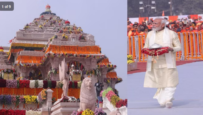 आखिर 500 वर्षों का इंतजार सोमवार 22 जनवरी को खत्म हो गया। इस अवसर पर प्रधानमंत्री नरेंद्र मोदी भी अयोध्या रामनगरी पहुंचे। इसके बाद पीएम नरेंद्र मोदी ने राम मंदिर में प्रवेश कर लिया है। वहीं, पीएम मोदी प्राण प्रतिष्ठा कार्यक्रम के दौरान पारंपरिक पोशाक में नजर आए। पीएम मोदी धोती कुर्ता और मैचिंग की जैकेट पहने हुए थे।