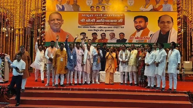 लोकसभा चुनाव के दौरान भाजपा प्रत्याशी के लिए प्रचार करते हुए प्रबुद्ध वर्ग को मुख्यमंत्री योगी आदित्यनाथ ने संबोधित किया। इस दौरान उन्होंने कहा कि 2017 से पहले दंगा युक्त प्रदेश होता था, लेकिन अब प्रदेश के हालात बदल गए हैं और दंगा युक्त के बजाए रोजगार युक्त प्रदेश बन चुका है। प्रदेश के विकास के साथ ही जिले में भी विकास हुआ है और जिले के ओडीओपी (खुर्जा की क्रॉकरी) को नई पहचान मिली है।