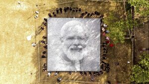 स्ट्रिंग पोर्ट्रेट थ्रेड आर्ट कला विधि से छात्रों ने बनाया नरेंद्र मोदी का पोर्ट्रेट