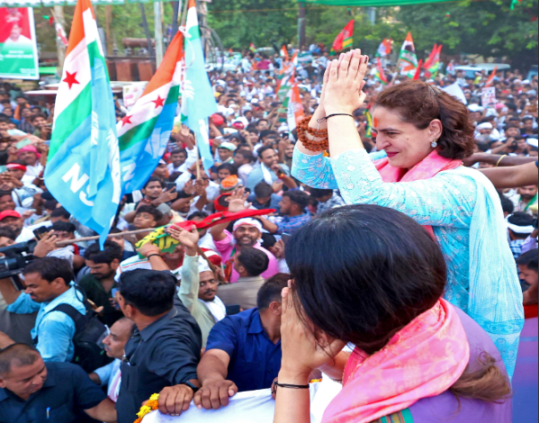 वाराणसी में अजय राय के समर्थन में प्रियंका-डिंपल का रोड शो