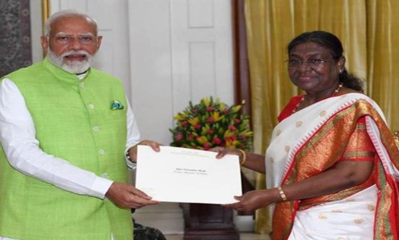 प्रधानमंत्री नरेन्द्र मोदी ने बुधवार को अपना इस्तीफा राष्ट्रपति द्रौपदी मुर्मू को सौंप दिया जिसे राष्ट्रपति ने स्वीकार कर लिया और उनसे नयी सरकार के कार्यभार संभालने तक पद पर बने रहने को कहा। राष्ट्रपति भवन द्वारा जारी एक विज्ञप्ति में यह जानकारी दी गई। विज्ञप्ति में कहा गया है, ‘‘प्रधानमंत्री श्री नरेन्द्र मोदी ने आज राष्ट्रपति से मुलाकात की और मंत्रिपरिषद के साथ अपना इस्तीफा उन्हें सौंप दिया।