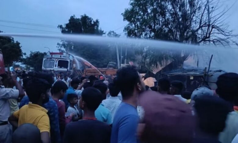 आग लगने से यातायात ठप हो गया