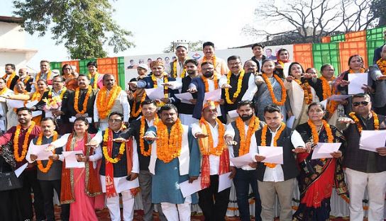 चुनाव परिणाम घोषित होने के कई दिन बाद शुक्रवार को शहरी निकायों की नवनिर्वाचित सरकारों ने कमान संभाल ली। नगर निगम, पांच नगर पालिका और एक नगर पंचायत के लिए इस दिन भव्य शपथ ग्रहण समारोह आयोजित किए गए। हल्द्वानी शहर के रामलीला मैदान में आयोजित कार्यक्रम में मेयर गजराज सिंह बिष्ट को आयुक्त दीपक रावत ने शपथ दिलाई। शपथ के बाद सभी निकायों के बोर्ड की पहली बैठक भी हुई।