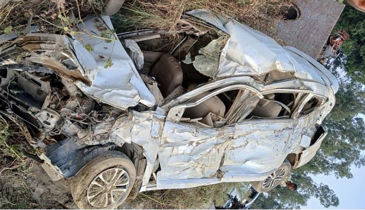 कार अनियंत्रित होकर खाई में पलट गई थी
