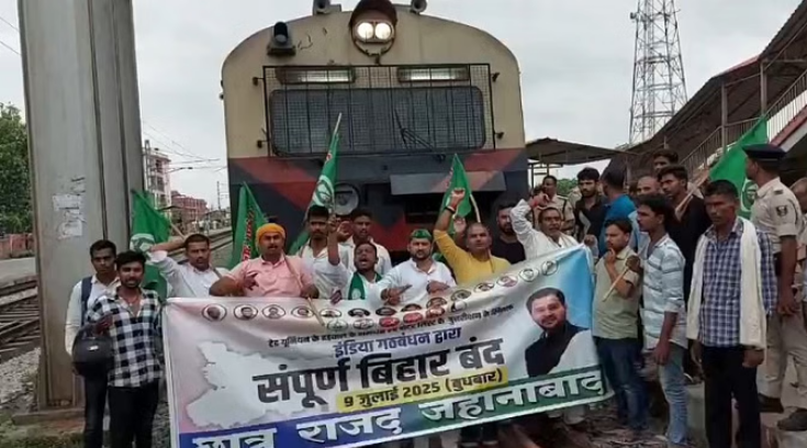 प्रदर्शनकारियों ने पटना-गया रेलखंड के जहानाबाद कोर्ट रेलवे स्टेशन पर एक पैसेंजर ट्रेन को भी कुछ देर के लिए रोक दिया। कार्यकर्ताओं ने रेलवे ट्रैक पर उतरकर नारे लगाए और फोटो खिंचवाए। हालाँकि मौके पर मौजूद रेल पुलिस ने समझा-बुझाकर ट्रैक को खाली कराया, जिसके बाद ट्रेन को आगे रवाना किया गया।