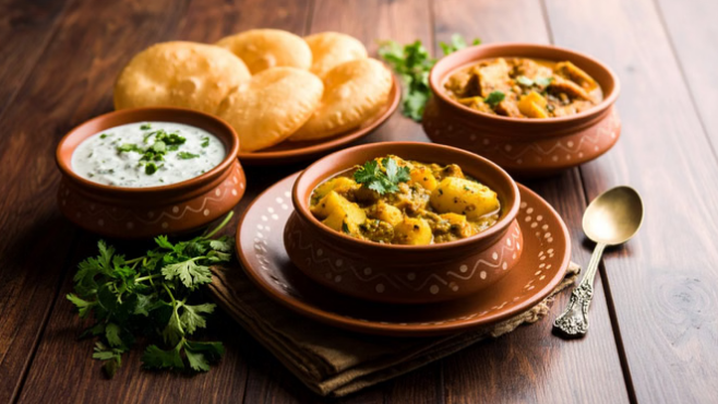 भाई दूज के दिन पूड़ी-सब्जी का लंच सबसे लोकप्रिय कॉम्बिनेशन है। मसालेदार आलू की सब्जी और गरमागरम पूड़ियां त्योहार के स्वाद को दोगुना कर देती हैं।