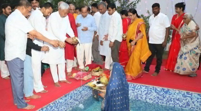 सीएम नीतीश कुमार ने दिया भगवान भास्कर को अर्घ्य