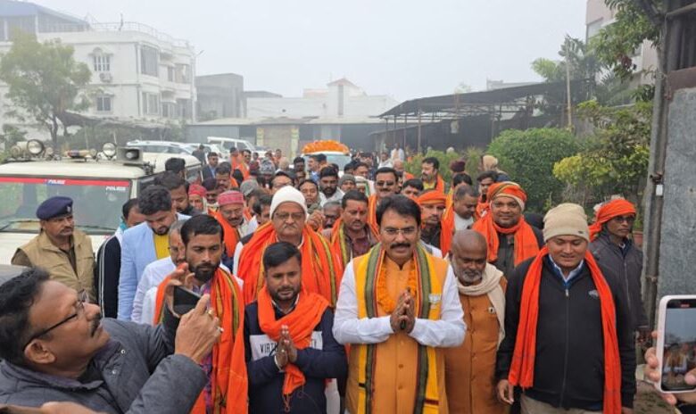 भारतीय जनता पार्टी के नए प्रदेश अध्यक्ष संजय सरावगी पटना पहुंच चुके हैं। प्रदेश अध्यक्ष बनने के बाद पटना पहुंचे सरावगी के स्वागत में भाजपा कार्यकर्ता सड़क पर उतरे। हाड़ कंपा देने वाली ठंड में भी भाजपा नेताओं का जोश हाई दिखा। वह संजय सरावगी के साथ रोड शो में शामिल हुए। रोड शो की शुरुआत करने से पहले प्रदेश अध्यक्ष ने बेली रोड पर बाबा साहेब की प्रतिमपर माल्यार्पण किया। इसके बाद बेली रोड से वीर चंद पटेल रोड स्थित भाजपा कार्यालय तक उन्होंने रोड शो किया। अंबेडकर प्रतिमा, बेली रोड से लेकर भाजपा प्रदेश कार्यालय तक उनका भव्य रोड शो निकाला गया। इस दौरान जगह-जगह कार्यकर्ताओं और समर्थकों ने शंखनाद, फूलों की बारिश और नारों के साथ उनका अभिनंदन किया। इसके बाद भाजपा कार्यालय पहुंचे।