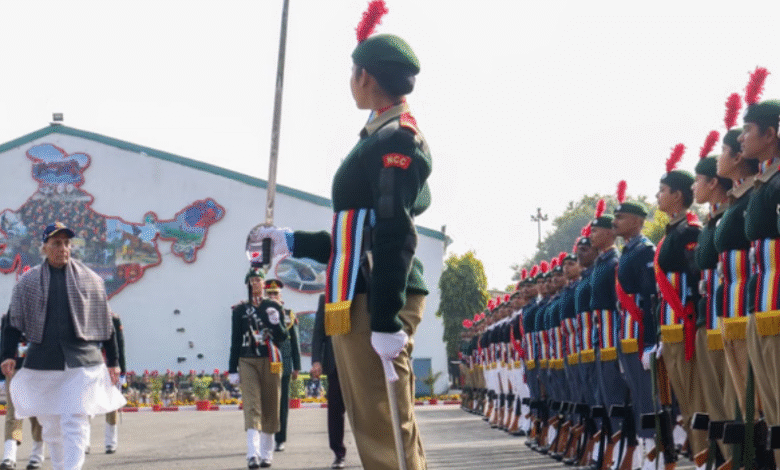 रक्षा मंत्री राजनाथ सिंह ने एनसीसी कैडेट्स को देश की दूसरी सुरक्षा पंक्ति बताया। उन्होंने युवाओं से अनिश्चित वैश्विक हालात में शारीरिक, मानसिक और भावनात्मक रूप से हमेशा तैयार रहने की अपील की।