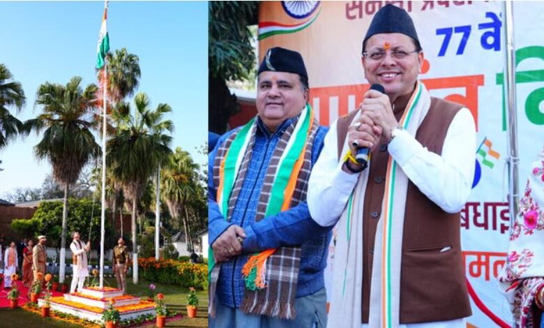 सीएम पुष्कर सिंह धामी ने 77वें गणतंत्र दिवस के अवसर पर मुख्यमंत्री आवास में राष्ट्रीय ध्वज फहराया। इस अवसर पर उन्होंने सभी को संविधान की उद्देशिका की शपथ भी दिलाई। इसके साथ ही उन्होंने प्रदेशवासियों को गणतंत्र दिवस की शुभकामनाएं दीं।