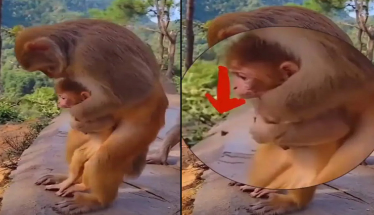 वायरल हो रहे वीडियो में एक बंदर अपने छोटे से बच्चे को पीछे से पकड़कर जोर से झटका दे रहा है। उसके ऐसा करते ही बच्चे के मुंह से कोई चीज़ बाहर गिरती है, जो शायद उसके गले में कहीं जाकर अटक गई थी। इस प्रोसेस को मेडिकल साइंस में एब्डॉमिनल थ्रस्ट या फिर Heimlich Manoeuvre कहा जाता है। इसका इस्तेमाल तब होता है, जब किसी बाहरी ऑब्जेक्ट की वजह से अपर एयरवे में रुकावट आने लगती है। आश्चर्य इस बात का है कि वीडियो में बंदर इस प्रोसेस को बेहद कुशलता से कर रहा है।