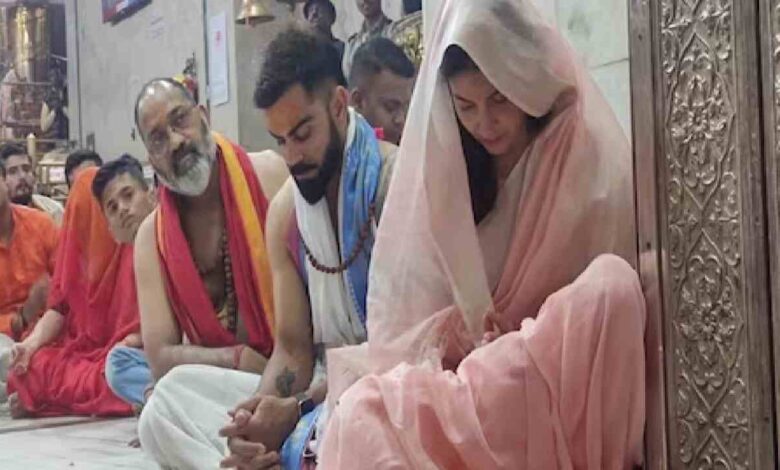 इस दौरान अभिनेत्री अनुष्का शर्मा जहां हल्के गुलाबी रंग की साड़ी में नजर आईं तो वहीं उनके पति विराट कोहली माथे पर चंदन और गले में रुद्राक्ष की माला के साथबनियान और धोती धारण किए हुए थे। यहां पति-पत्नी दोनों हीमहाकाल के सामने पहली पंक्ति में हाथ जोड़ बैठे दिखे।
