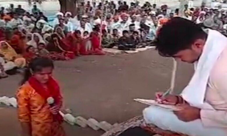 धीरेन्द्र शास्त्री की तरह ग्रामीणों को गद्दी के पास बुलाते