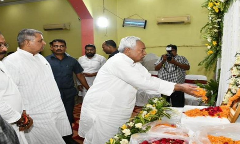बिहार के मुख्यमंत्री नीतीश कुमार रविवार को एस०के० मैरेज पार्क, अनिशाबाद, फुलवारीशरीफ जाकर पूर्व विधान पार्षद रणविजय सिंह के पिताजी स्व० रणधीर कुमार सिंह के श्राद्धकर्म में शामिल हुये। मुख्यमंत्री ने स्व० रणधीर कुमार सिंह के चित्र पर पुष्प अर्पित कर उन्हें अपनी श्रद्धांजलि दी और शोक संतप्त परिजनों से मिलकर उन्हें सांत्वना भी दी।