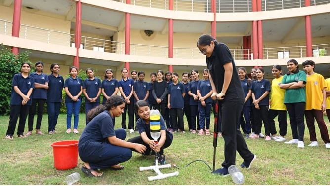 विशेषज्ञ के रूप में उपस्थित रीजनल साइंस सेंटर के परियोजना समन्वयक साकेत सिंह कौरव ने इसरो के साथ चंद्रयान 3 एवं भारतीय अंतरिक्ष कार्यक्रम के बारे में विस्तार से बताया। इसके बाद विशेषज्ञ के रूप में शैलेंद्र कसेरा ने बच्चों को सॉफ्ट लैंडिंग में आने वाली समस्याओं को प्रयोगात्मक रूप से समझने के लिए चंद्रयान सॉफ्ट लैंडिंग प्रतियोगिता करवाई, जिसमें स्कूल के द्वारा चंद्रयान का लैंडर मॉडल डिजाइन कर आसपास के सामान्य घरेलू वस्तुओं से बनाया गया। सभी चंद्रयान लैंडर मॉडलों के सॉफ्ट लैंडिंग की प्रतियोगिता कराई गई। छात्राओं द्वारा डिजाइन कर बनाए गए लैंडर ने सफलतापूर्वक सॉफ्ट लैंडिंग की।