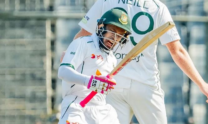 रहीम ने जॉर्डन नील की गेंद पर सिंगल लेकर अपने टेस्ट करियर का 13वां शतक पूरा किया। 38 साल के रहीम ने जैसे ही शतक पूरा किया तो शेर-ए-बांग्ला स्टेडियम पर मौजूद दर्शकों ने तालियों की गड़गड़ाहट से माहौल खुशनुमा बना दिया। याद दिला दें कि मुश्फिकुर रहीम 100 टेस्ट खेलने वाले पहले बांग्लादेशी क्रिकेटर भी बने।