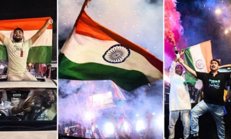 दिल्ली में इंडिया गेट के पास बड़ी संख्या में लोग जमा हुए और टीम इंडिया की जीत का जश्न मनाया। मुंबई, लखनऊ, रांची, रायपुर और पटना जैसे शहरों में भी लोग सड़कों पर निकल आए। कई जगहों पर पटाखे फोड़े गए और ढोल-नगाड़ों के साथ लोगों ने देर रात तक जश्न मनाया।